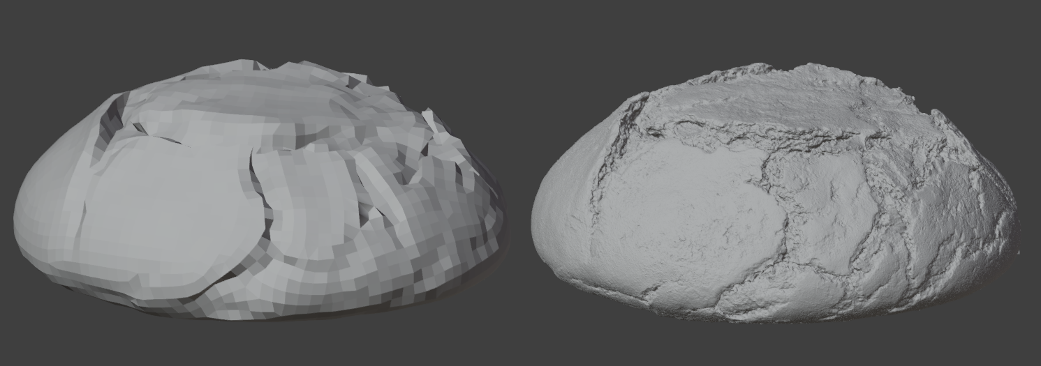 From a bunch of bread images and the use of RealityScan and Blender, was created a low poly, Realistic looking bread.